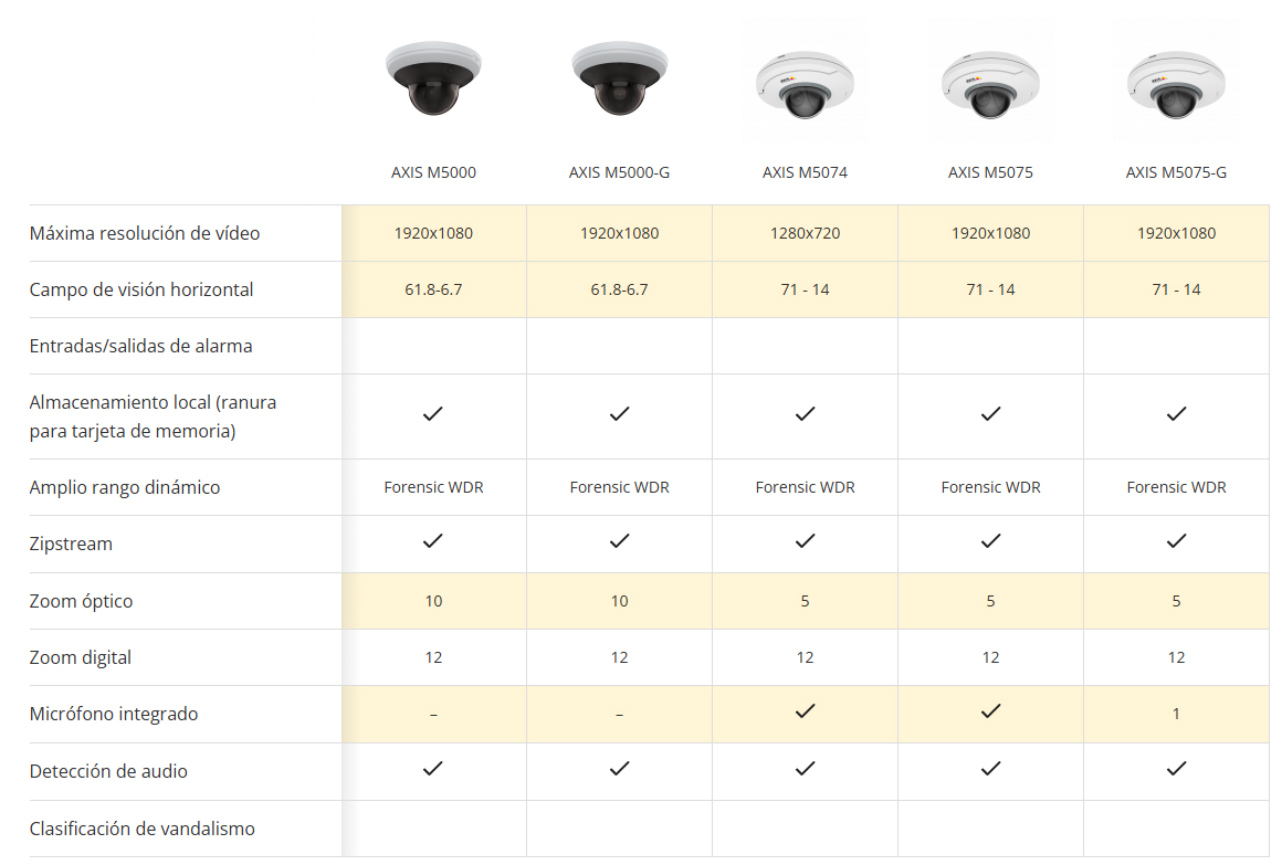 La serie AXIS M50 ofrece soluciones versátiles y económicas para aplicaciones de interior como bancos y comercios. Con modelos que incluyen zoom óptico de 10x y PTZ integrado, permiten pasar de una vista general a detalles precisos con un solo clic. Además, cuentan con funcionalidad diurna/nocturna y enfoque automático para un monitoreo efectivo en todo momento.